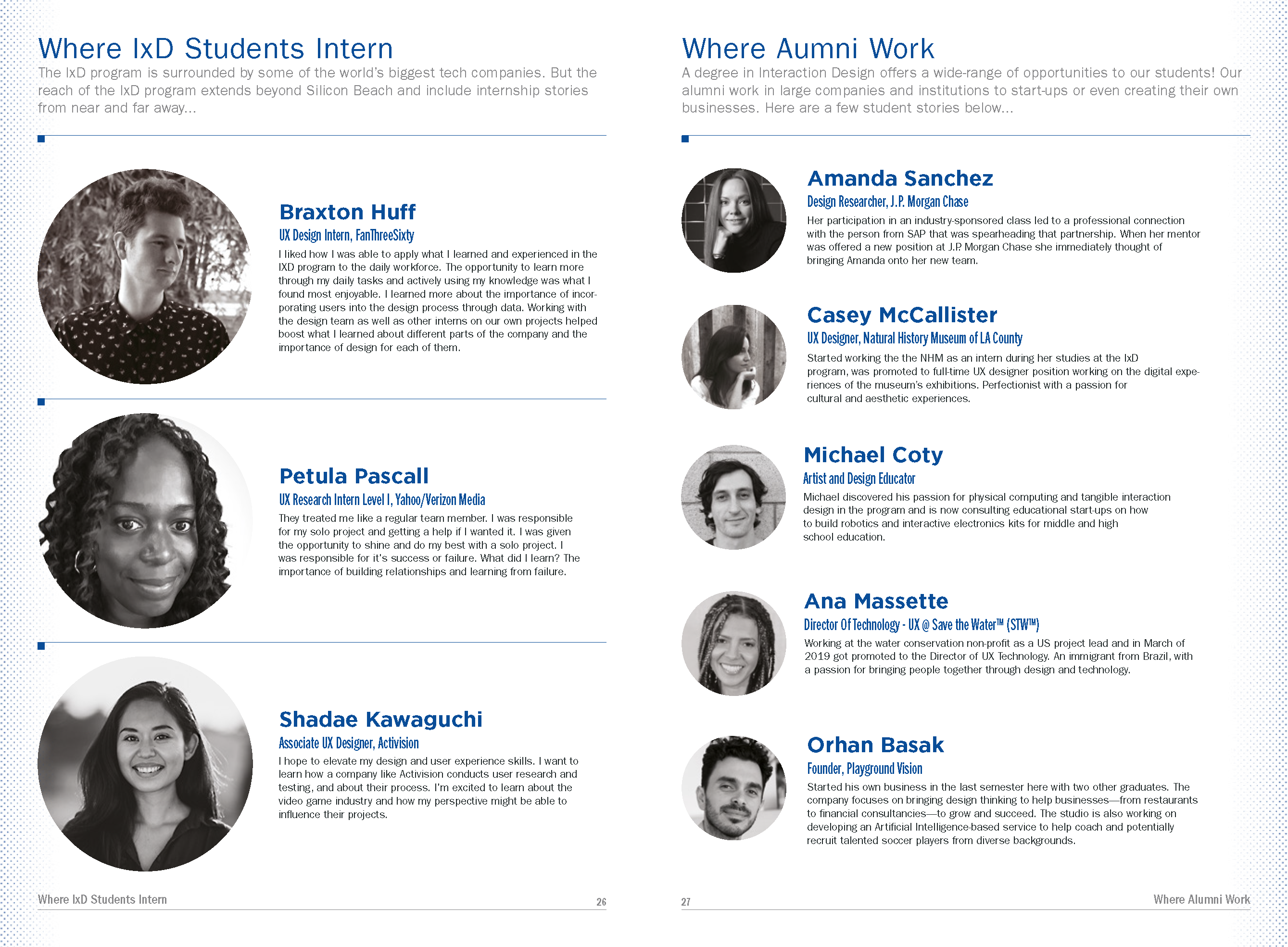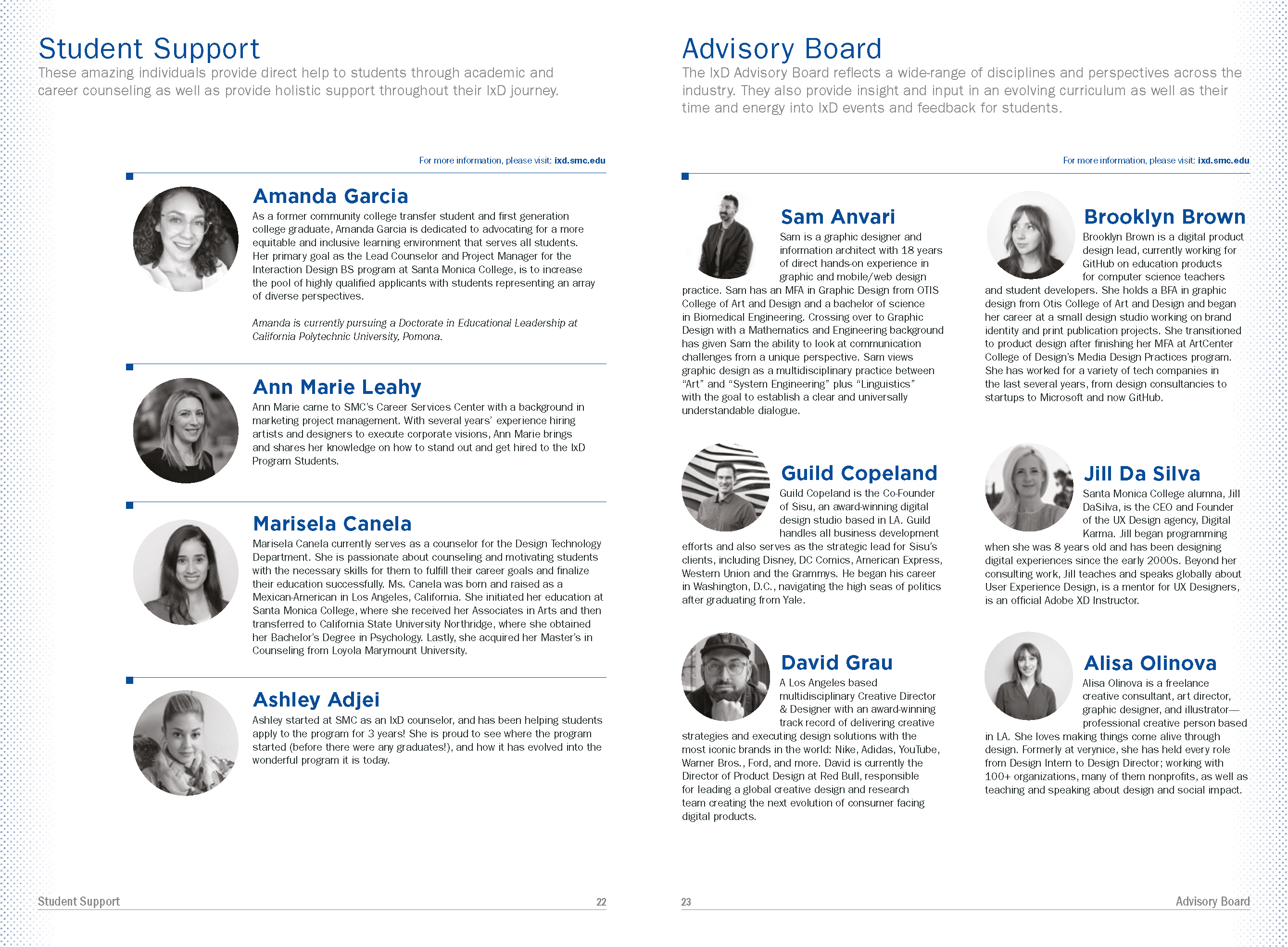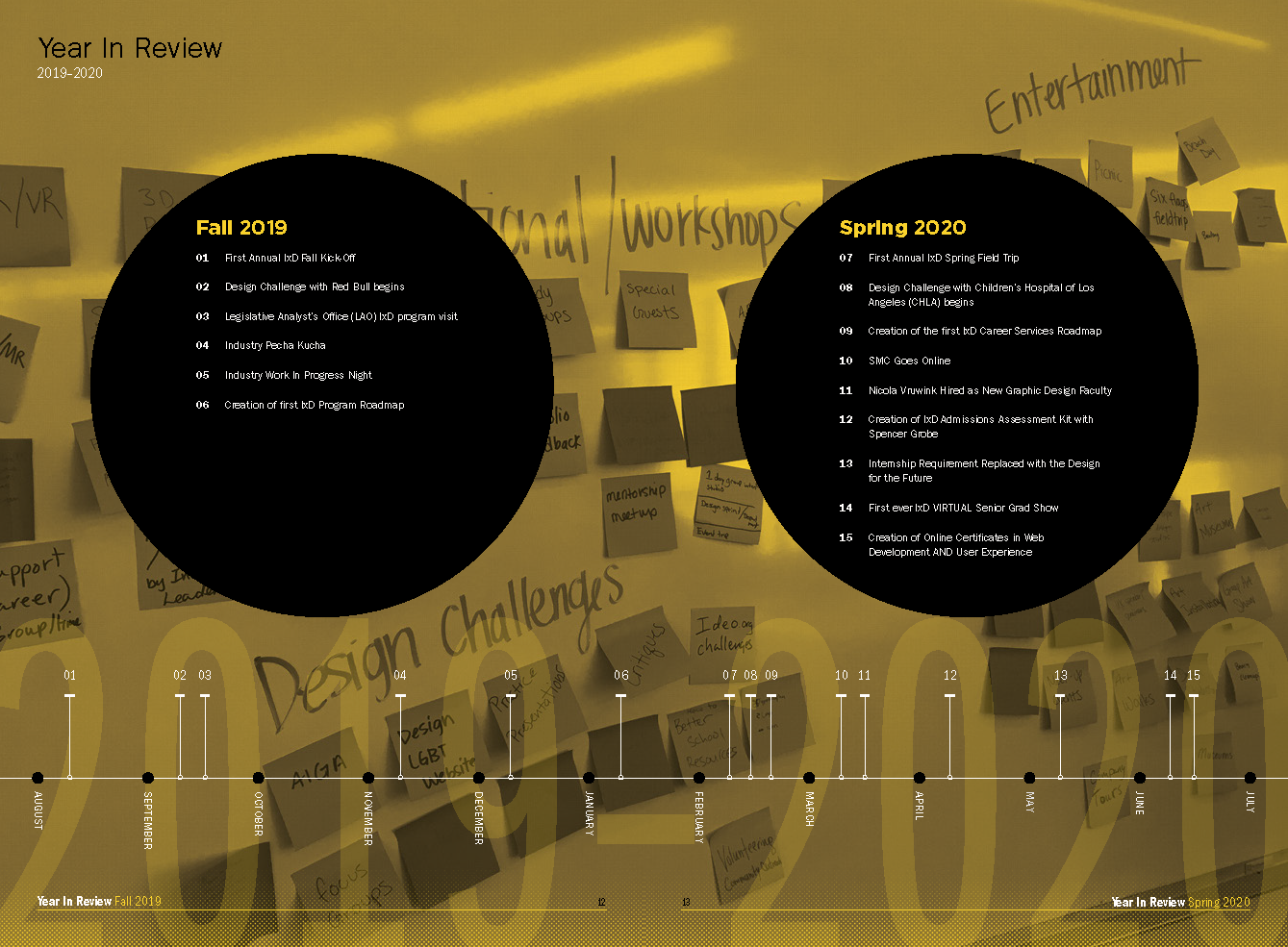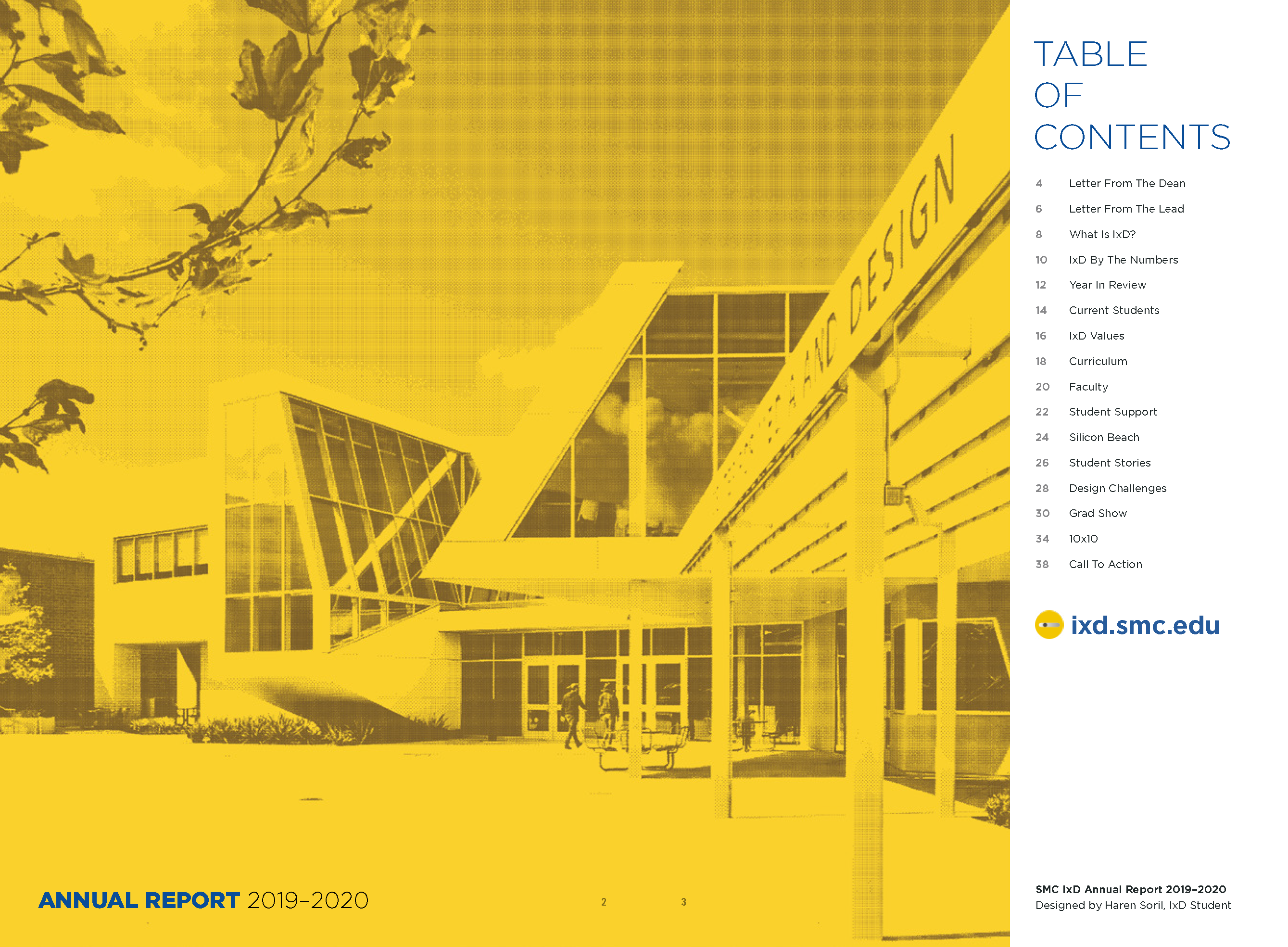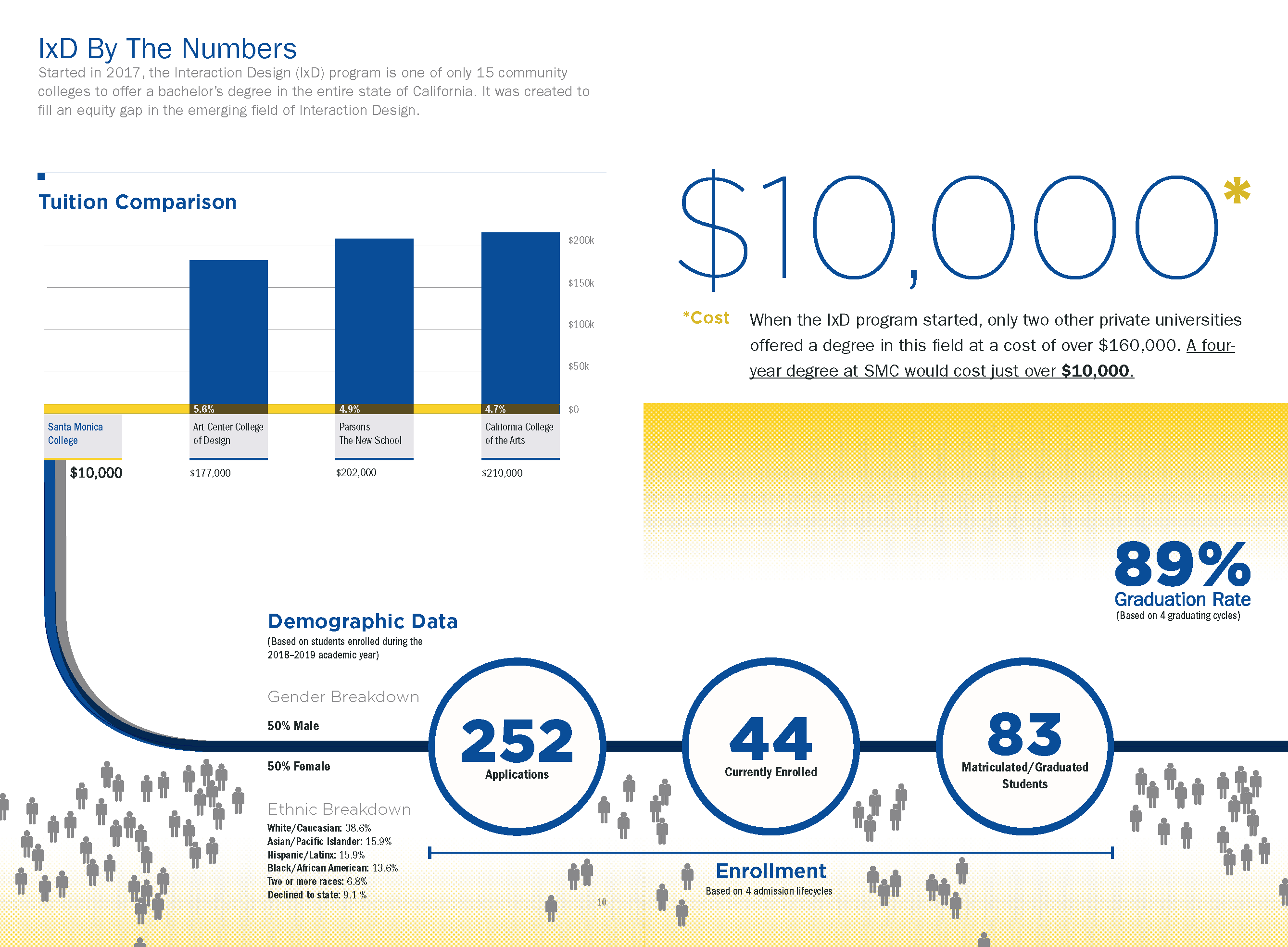 I’ve been given the opportunity to create the first ever annual report for Santa Monica College’s Interaction Design program. In creating this deliverable, I was able to gather a substantial amount of data and accomplishments from the campus, their staff, current students, and alumni. In comparison to visualizations prior to this annual report, I was able to digest all the important factors that both b2b and b2c stakeholders would be interested in reading of the program.