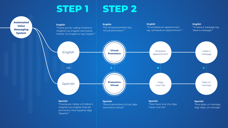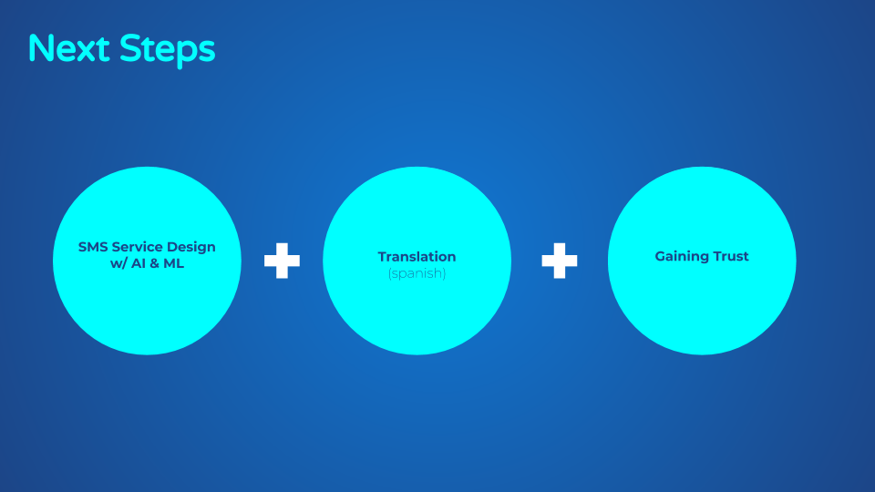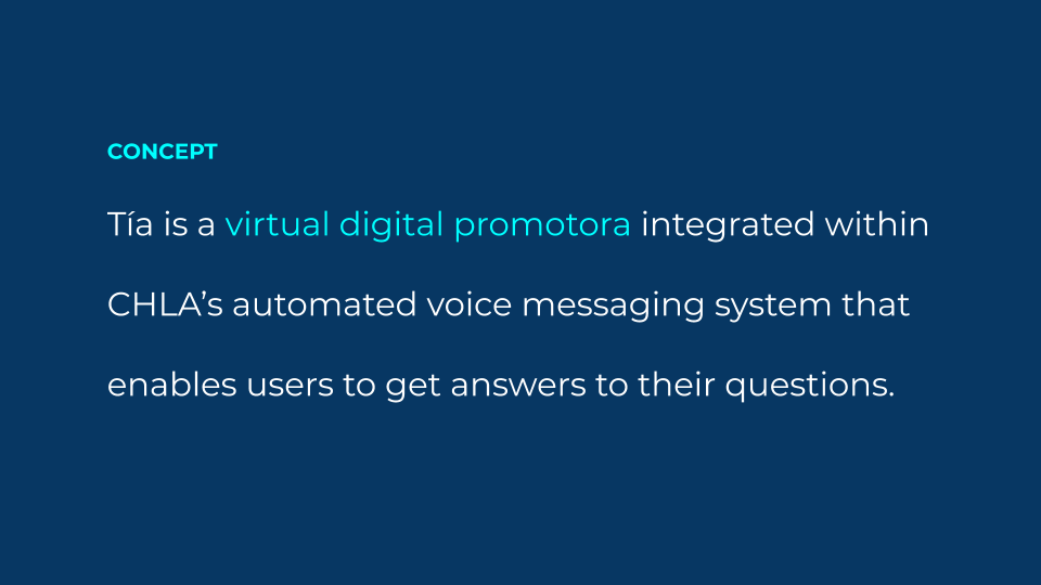 Tia is an AI for Children’s Hospital Los angeles, helping LatinX families get the answers they need at time when help isn’t available. Our AI (Tia) is bilingual helps communicate to the spanish-speaking user with simplified information and instructions given according to what the user might need. Promotoras are group of individuals in the LatinX community of whom other LatinX individuals trust—they serve as the most knowledgeable and trusted in their community, helping others in whichever way they might need. Because of this, we’ve extended the opportunity to get help from promotoras through AI. Tia contains all the knowledge all promotoras at CHLA have. When contacted out of office hours. Our AI is able to help.